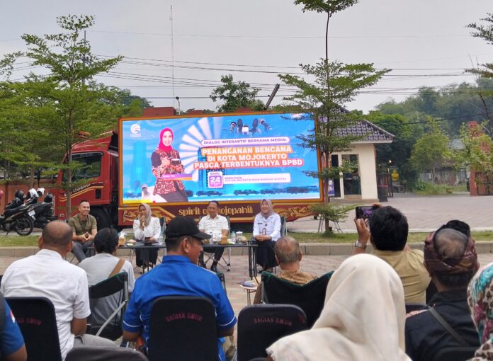 Mojokerto,Xtimenews.com – Pemerintah Kota Mojokerto menggelar dialog interaktif bersama insan media dengan tema penanganan bencana pasca terbentuknya Badan Penanggulangan Bencana Daerah (BPBD) di Sentra IKM Batik Maja Barama Wastra, Rabu (24/9).