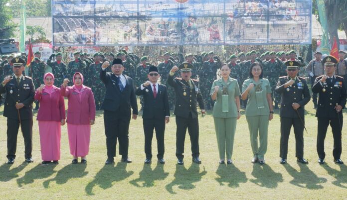 Hadir dalam kegiatan, Dandim 0815/Mojokerto Letkol Inf Abi Swanjoyo, S.Hub.Int., didampingi Ketua Persit KCK Cabang XXX Kodim 0815, Bupati Mojokerto H. Muhammad Al Barra, Lc., M.Hum., Wakil Walikota Mojokerto Dr. Rachman Sidharta Arisandi, S.I.P., M.Si., Kapolres Mojokerto Kota/Kabupaten serta Kajari Kota Mojokerto, Ka PN Mojokerto, dan Ka SPN Polda Jatim Kombes Agus Wibowo, S.I.K., turut hadir pula para Kasi Korem, Danbapras, Kabalak, Kasdim 0815/Mojokerto, para Veteran, dan unsur masyarakat sipil dari berbagai instansi.(Pendim 0815/Mjk/Tin)
