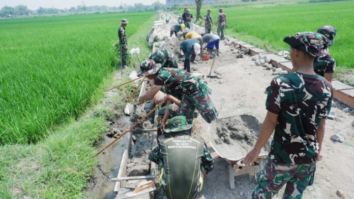 Gotong Royong di Terik Matahari, Satgas TMMD ke-126 Kodim 0815/Mojokerto Genjot Pembangunan TPT dan JUT Desa Sumbertanggul