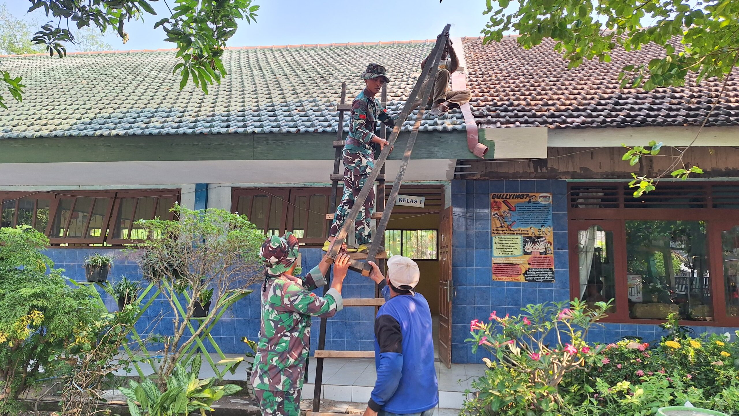 Mojokerto,Xtimenews.com – Masih dalam semangat gotong royong yang tampak jelas dalam kegiatan TMMD ke-126 Kodim 0815/Mojokerto, sejumlah personel satgas bersama warga bergotong royong memperkuat struktur atap gedung SDN Sumbertanggul 2, Kecamatan Mojosari, Kabupaten Mojokerto, Jumat (10/10/2025).