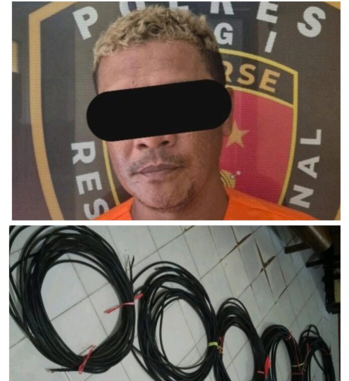 Sigi, Xtimenews.com – ML (42) warga Desa Wani, Kecamatan Tanantovea, Kabupaten Donggala, ditangkap aparat Polsek Palolo Polres Sigi, pada hari Selasa (7/10/25) di Desa Bobo, Kecamatan Palolo, Kabupaten Sigi, karena terlibat pencurian kabel Tower. Seorang rekannya AG berhasil melarikan diri dan sedang dikejar polisi.