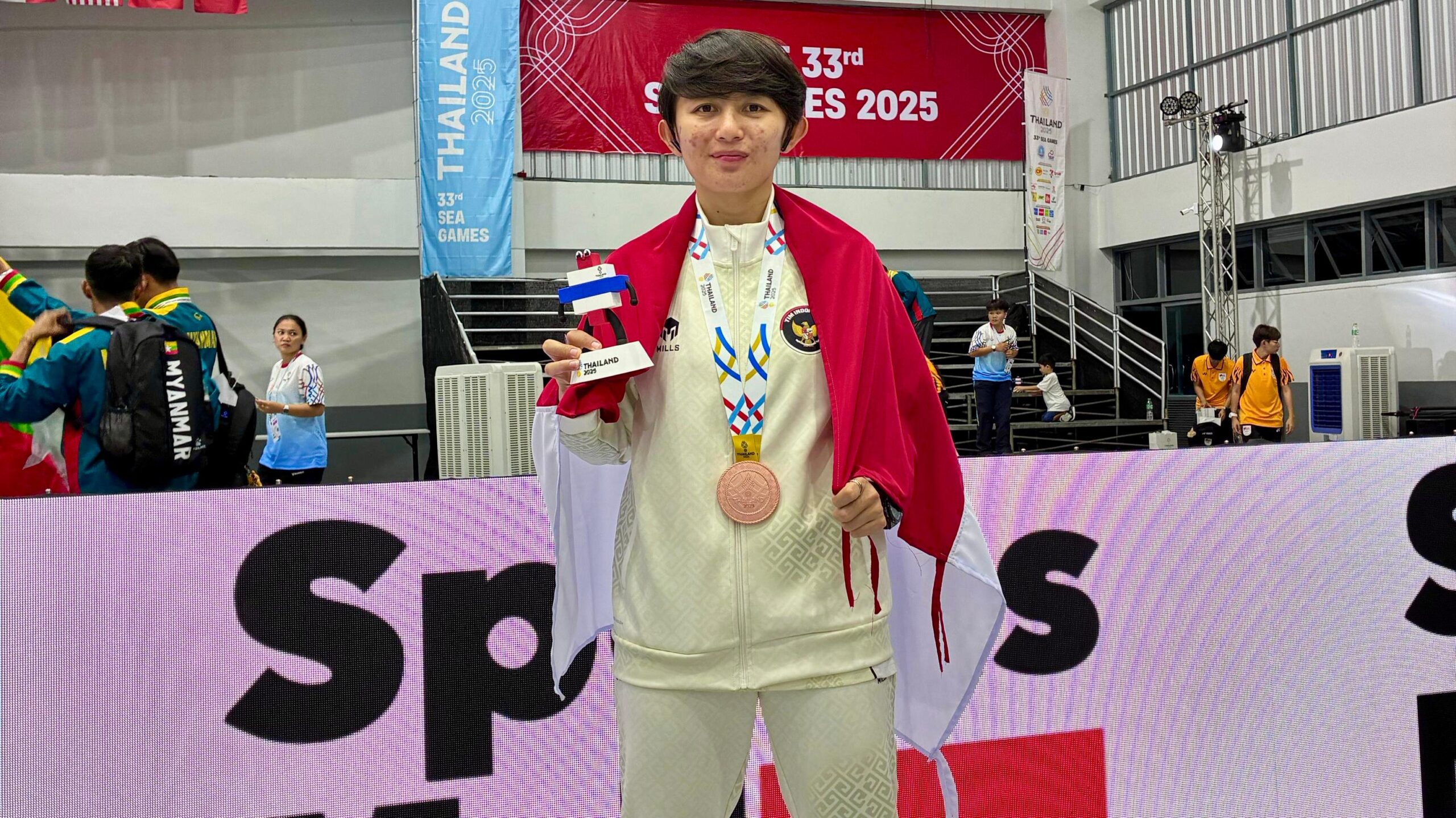 Palu,Xtimenews.com – Atlit Cabang Olahraga Teqball Indonesia, pasangan Akyko Micheel Kapito dari Sulteng dengan Gabriella Jessica Pongbura asal Jawa Timur, berhasil menyabet medali perunggu saat berlaga di Multipurpose Gymnasium, Chonburi Sports School, Chonburi dalam ajang SEA Games 2025, yang digelar di Thailand, Sabtu (13/12/25).