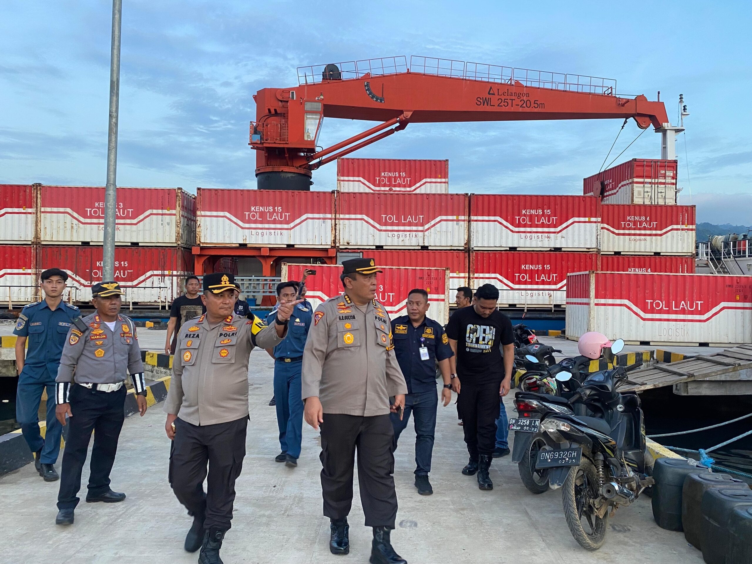Morut,Xtimenews.com – Untuk memastikan keselamatan pengguna jasa angkutan laut selama libur panjang dalam rangka perayaan hari Natal 2025 dan Tahun Baru 2026 (Nataru), Karoops Polda Sulteng Kombes Pol. Giuseppe Reinhard Gultom, bersama Dirlantas Kombes Pol. Atot Irawan dan Dirsamapta Kombes Pol. P. Sitanggang, melakukan kunjungan ke Polres Morowali Utara (Motor) guna mengecek kesiapan pengamanan di pelabuhan Kolonodale, pada Sabtu (20/12/25), didampingi Kapolres Morut AKBP Reza Khomeini.