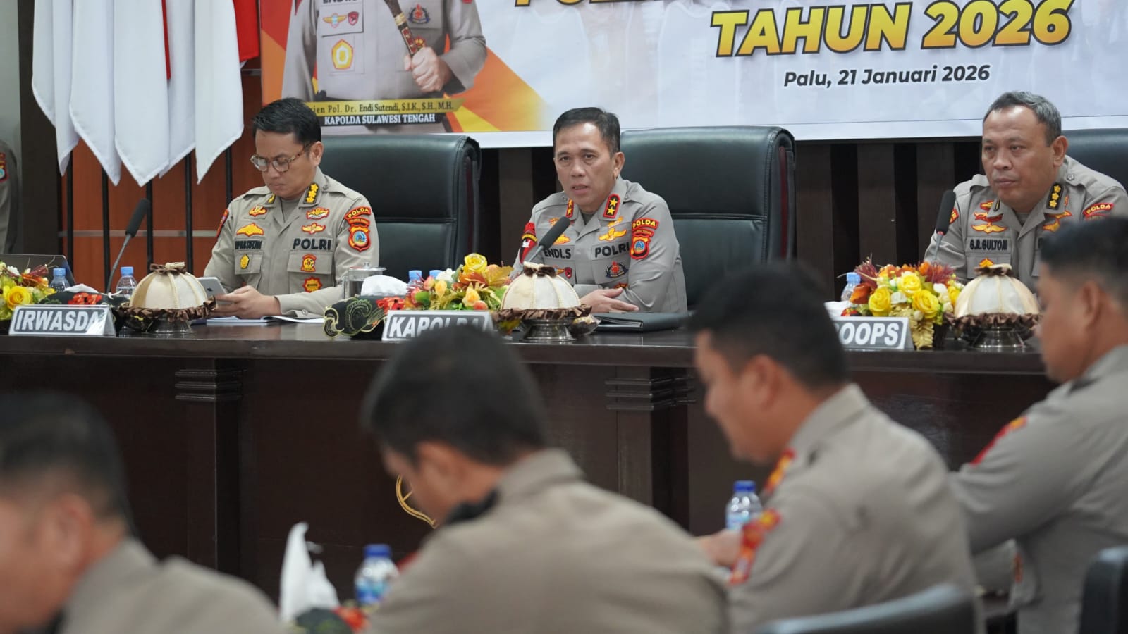 Kapolda Sulteng Irjen Pol. Endi Sutendi mengemukakan hal tersebut saat memimpin kegiatan Gelar Operasional (GO), dirangkaikan dengan Analisis dan Evaluasi (Anev) Situasi Keamanan dan Ketertiban Masyarakat (Sitkamtibmas), yang digelar di Lantai II ruang “Rupatama” Mapolda Sulteng, pada Rabu (21/1/26). Kegiatan ini diikuti Irwasda Kombes Pol. Purwanto, para Pejabat Utama, serta seluruh Kapolres/ta jajaran Polda Sulteng.