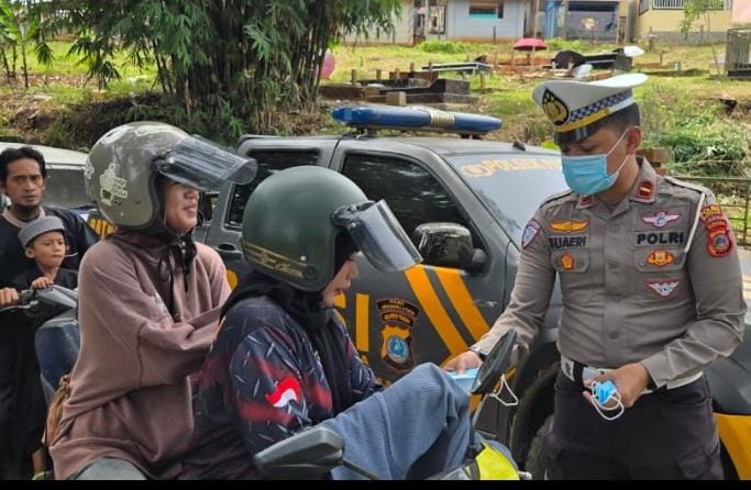 Morut,Xtimenews.com -Antisipasi terhadap meningkatnya kasus Infeksi Saluran Pernapasan Akut (ISPA) di Kabupaten Morowali Utara (Morut) khususnya di Kecamatan Petasia dan Kecamatan Petasia Barat, yang akhir-akhir ini terlihat meningkat, Polres Morut mengambil langkah astisipasi dengan membagikan masker secara gratis kepada warga masyarakat dan pemakai jalan.