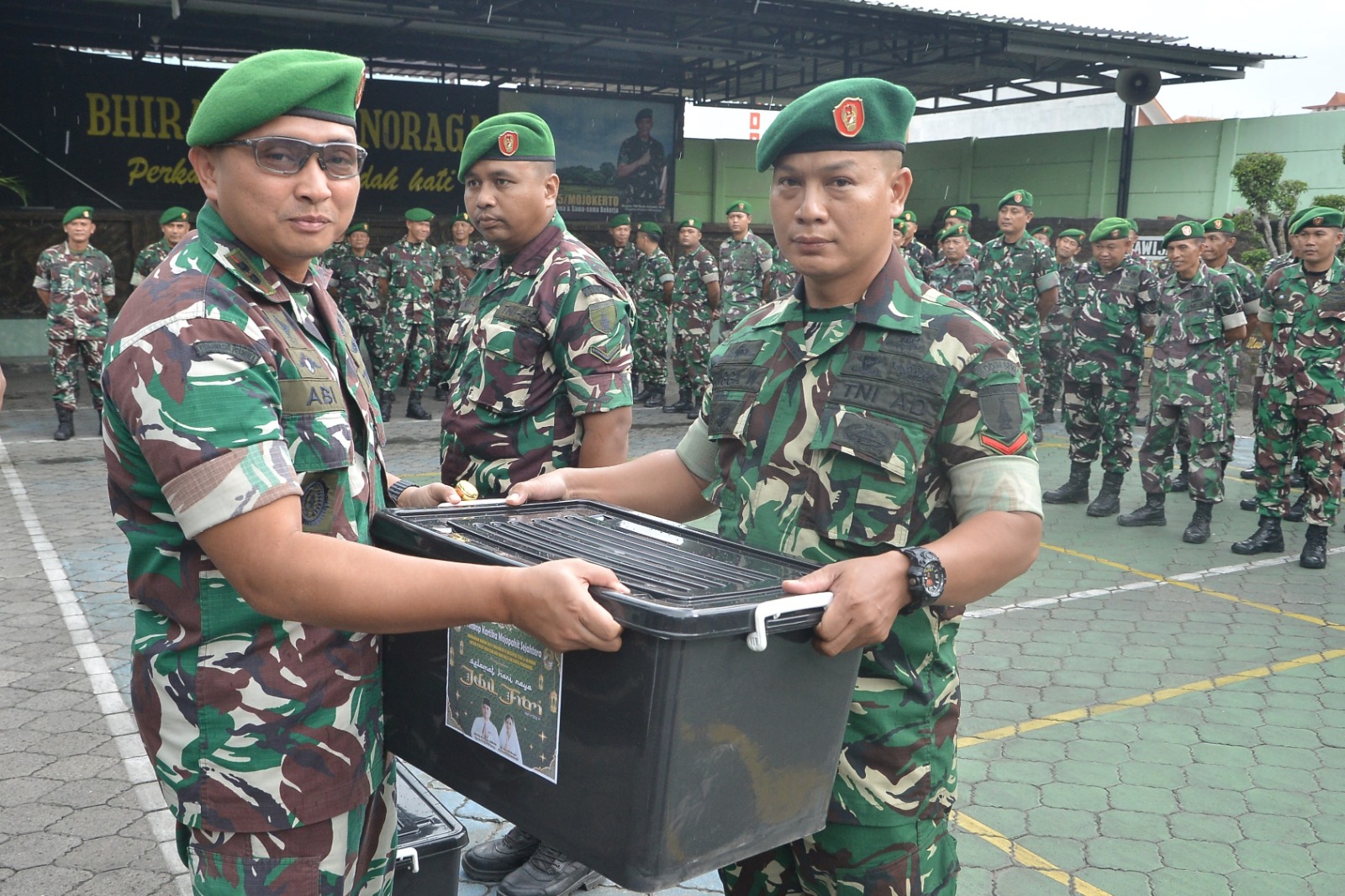 Kegiatan tersebut turut dihadiri oleh Kasdim 0815/Mojokerto Mayor Inf Suwadi, para perwira staf, Danramil jajaran, serta personel yang melaksanakan cuti Lebaran gelombang pertama. Suasana kegiatan berlangsung penuh kehangatan, ditandai dengan penyerahan bingkisan sebagai bentuk perhatian dan kepedulian pimpinan kepada anggota menjelang Hari Raya Idul Fitri.(Pendim 0815/Mjk/Tin)
